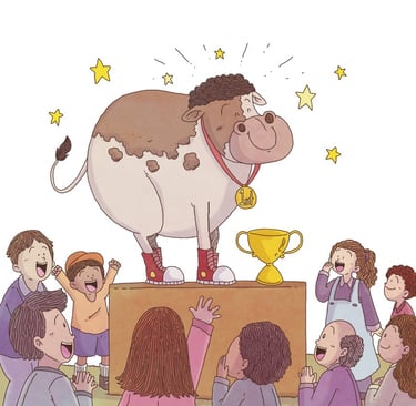 Clayton is no ordinary cow - always running, jumping, and chasing rabbits around the farm. Things quickly change when the farmer’s wife gives him a special gift of bright red sneakers. With a triathlon coming to town, Clayton eagerly joins the race, swimming, biking, and sprinting with all his might.